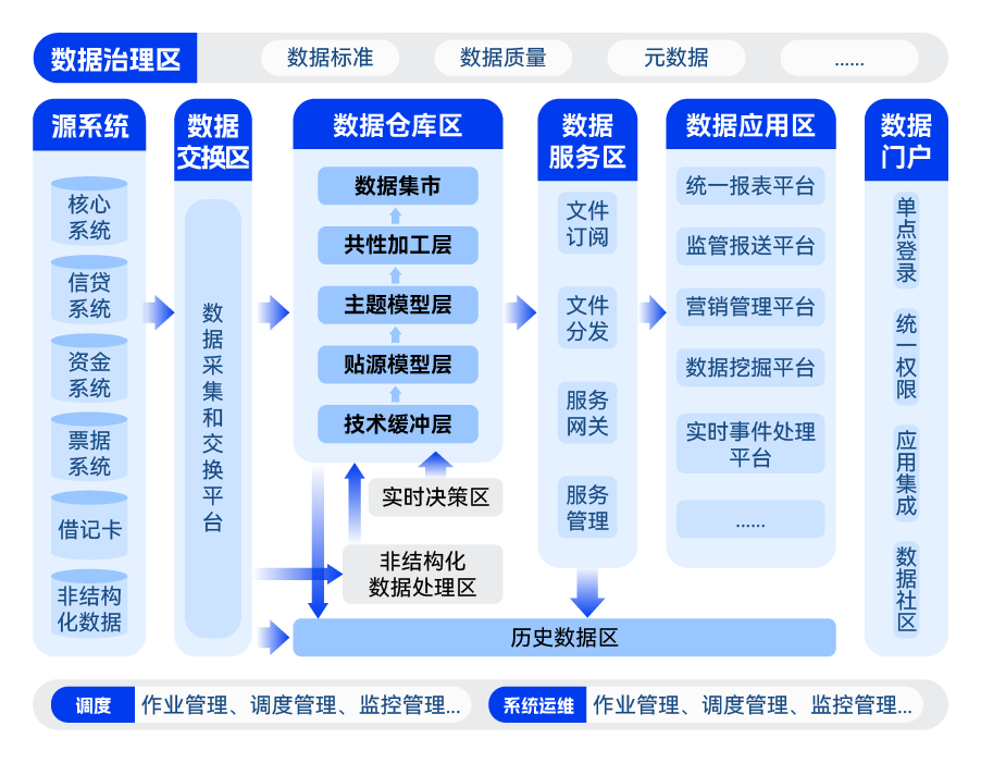 成熟的金融行業數據模型實現數據有效整合 基于金融行業多年沉淀積累,形成了適用于不同行業的數據模型,穩定、易于擴展,適應業務發展的需要; 先進的信創產品架構支持客戶未來規劃 采用全信創自主可控環境,核心引擎的數據庫組件擁有高可用、高可靠、高性能、高穩定、高擴展的優勢,滿足在金融行業的規?;瘧?,匹配客戶業務的核心訴求,可為未來業務發展提供更多可能性; 全面的配套工具保障高效的開發運維 基于長亮科技自研調度平臺、開發平臺、交換平臺等產品,以配置化方式,大大減少手工編碼工作量,提升運維效率; 與數據管控有效結合保證數據有序管理 結合企業數據治理體系,在數據倉庫層面實現全面數據標準落地、數據質量自動檢核監控、數據安全分類分級等,使數據倉庫的數據更加安全、易用,可為經營分析、監管報送等應用場景提供準確、全面、可靠的數據資源; 支持超過50個應用的供數要求 能夠支撐經營管理、客戶管理、財務管理、風險管理以及監管報送等超過 50 個應用的供數要求,滿足金融機構精細化運營的需要。