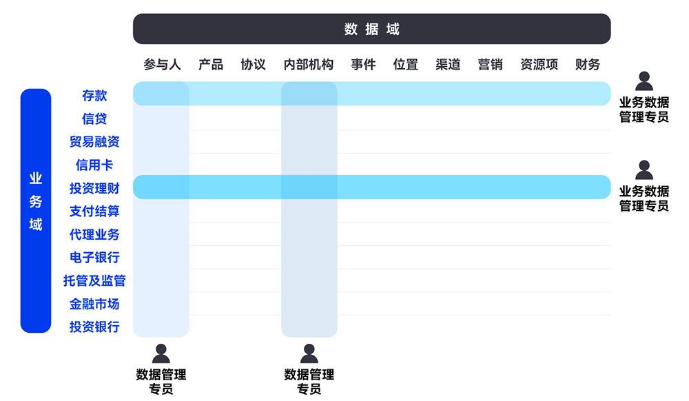 數據模型是業務人員與技術人員的接觸交互點,數據主題領域、實體、屬性,是數據管理的不同詳細粒度。模型設計過程需要業務參與分工,根據企業規模、數據管理成熟度等,設置數據管理的角色,賦予相應的管理職責與內容,最大限度地提高管理數據質量、價值、可用性和安全性的有效性和效率。