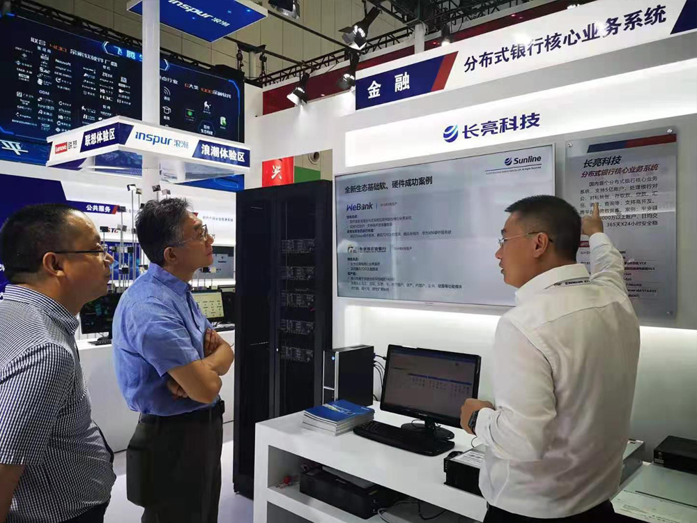 展覽期間,中共中央網(wǎng)信辦副主任劉烈宏、中共中央網(wǎng)信辦總工程師趙澤良、中共中央網(wǎng)信辦網(wǎng)安局一級(jí)巡視員兼副局長楊春艷均到長亮科技展位考察調(diào)研,劉烈宏副主任認(rèn)真聽取了長亮科技總裁助理孫世勝介紹公司“分布式銀行核心業(yè)務(wù)系統(tǒng)”近年來在金融安全可控領(lǐng)域做出的技術(shù)突破以及應(yīng)用生態(tài)環(huán)境技術(shù)創(chuàng)新,劉烈宏副主任表示了贊許。