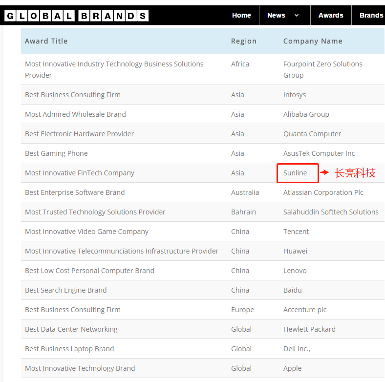 全球品牌雜志是一家全球領先的品牌雜志,匯集來自全球各個行業的精準信息源,經過對全球7000+企業進行提名、評估、及專業的行業評審,最終評選出在金融、教育、科技等行業領域表現卓越的公司,以此表彰努力追求卓越的重要企業,長亮科技是唯一入選的中國金融科技品牌。