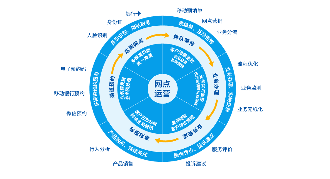 具體來講,首先,要進行多維度、立體化的客戶信息采集及識別,通過傳統(tǒng)介質(zhì)(銀行卡、身份證)、生物介質(zhì)(人臉、指紋、靜脈等)、虛擬介質(zhì)(手機號、微信號等)等方式在客戶到達網(wǎng)點前或進入網(wǎng)點時提前識別客戶。