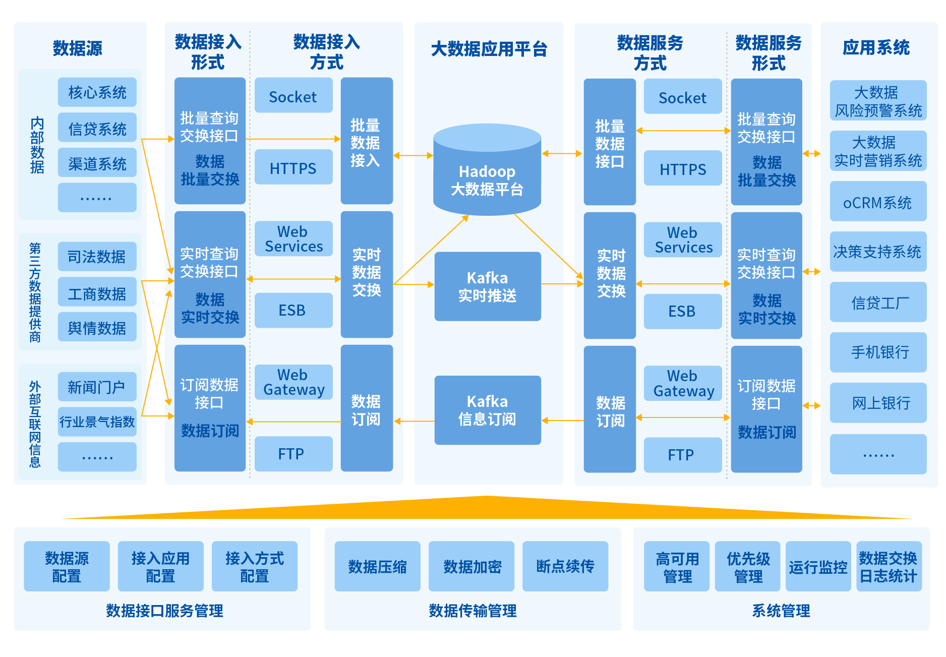 長(zhǎng)亮科技企業(yè)級(jí)數(shù)據(jù)網(wǎng)關(guān)平臺(tái)(SunEDH)產(chǎn)品定位為全行內(nèi)部數(shù)據(jù)和外部數(shù)據(jù)的接入、傳輸、交換、共享與服務(wù)的中心,是提升大數(shù)據(jù)平臺(tái)價(jià)值的基礎(chǔ)性平臺(tái)。