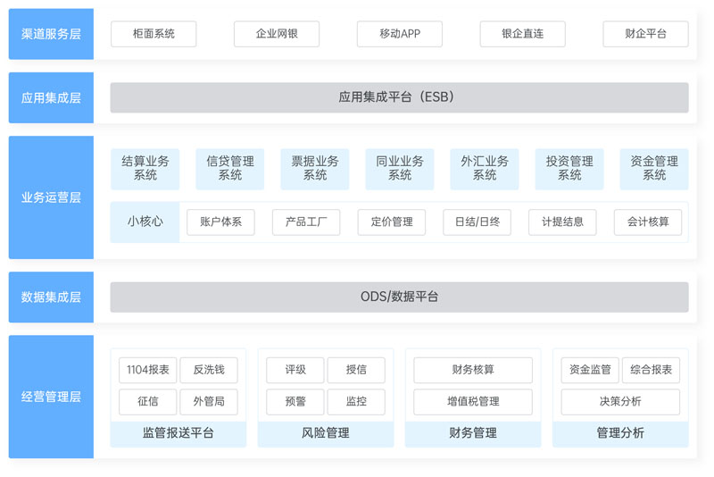 基于商業(yè)銀行核心架構(gòu)體系,采用模型化、組件化、參數(shù)化設(shè)計(jì)思想,通過(guò)微服務(wù)、分布式、云計(jì)算等新技術(shù)平臺(tái),提供“以客戶為中心,以產(chǎn)品為驅(qū)動(dòng),集全面業(yè)務(wù)管理、網(wǎng)上金融服務(wù)、監(jiān)督?jīng)Q策于一體”的一站式金融解決方案,為財(cái)務(wù)公司搭建一體化的金融服務(wù)平臺(tái),并支撐全流程的業(yè)務(wù)管理體系。