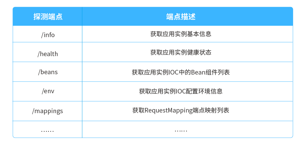 ● 實例探測:Spring Boot原生提供了Actuator組件來暴露運行期的各種狀態級數據指標,包括實例信息、啟動環境、配置數據、Bean加載信息、端點映射、日志級別等,同時也暴露了一些敏感且不安全的端點,如停止操作、數據庫密碼等。在利用Actuator組件實現實例狀態檢測功能的同時,需要將這些存在不安全的端點進行屏蔽,同時在這類端點上增加訪問安全權限控制,讓該組件可以在安全可控的范圍內為微服務治理觀測提供實例健康狀態探測相關特性能力。